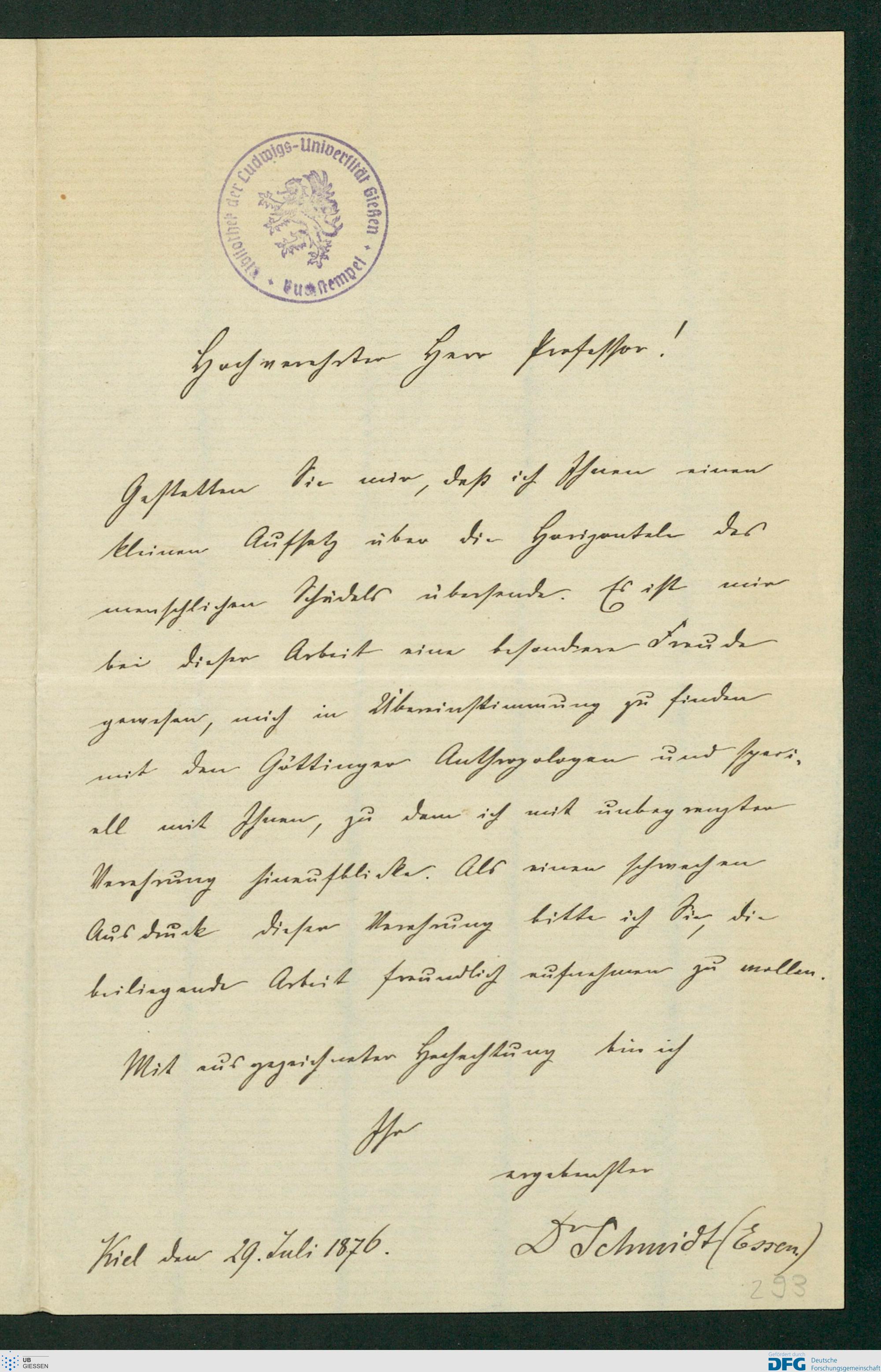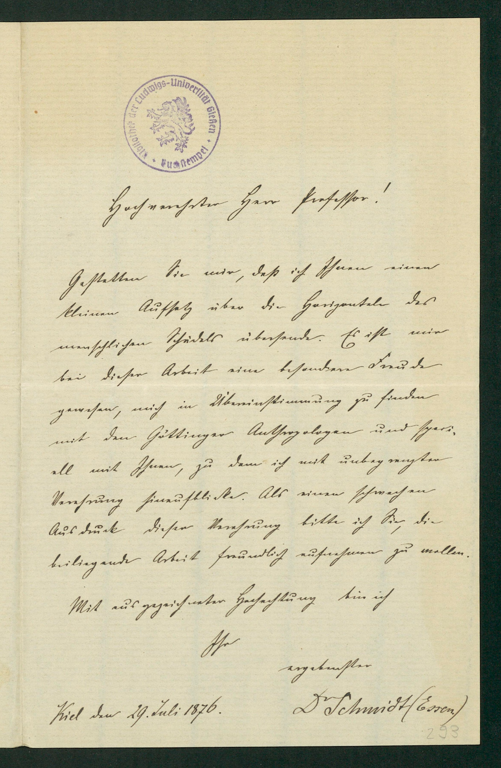 Brief von Emil Schmidt an Karl Ernst von Baer, 29.07.1876 [29. Juli 1876]