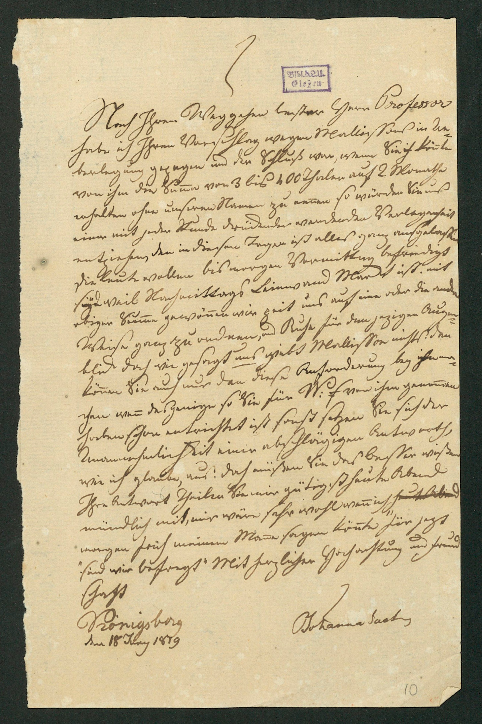 Brief von Johanna Sachs an Karl Ernst von Baer, 18.06.1819 [18 Juny 1819]