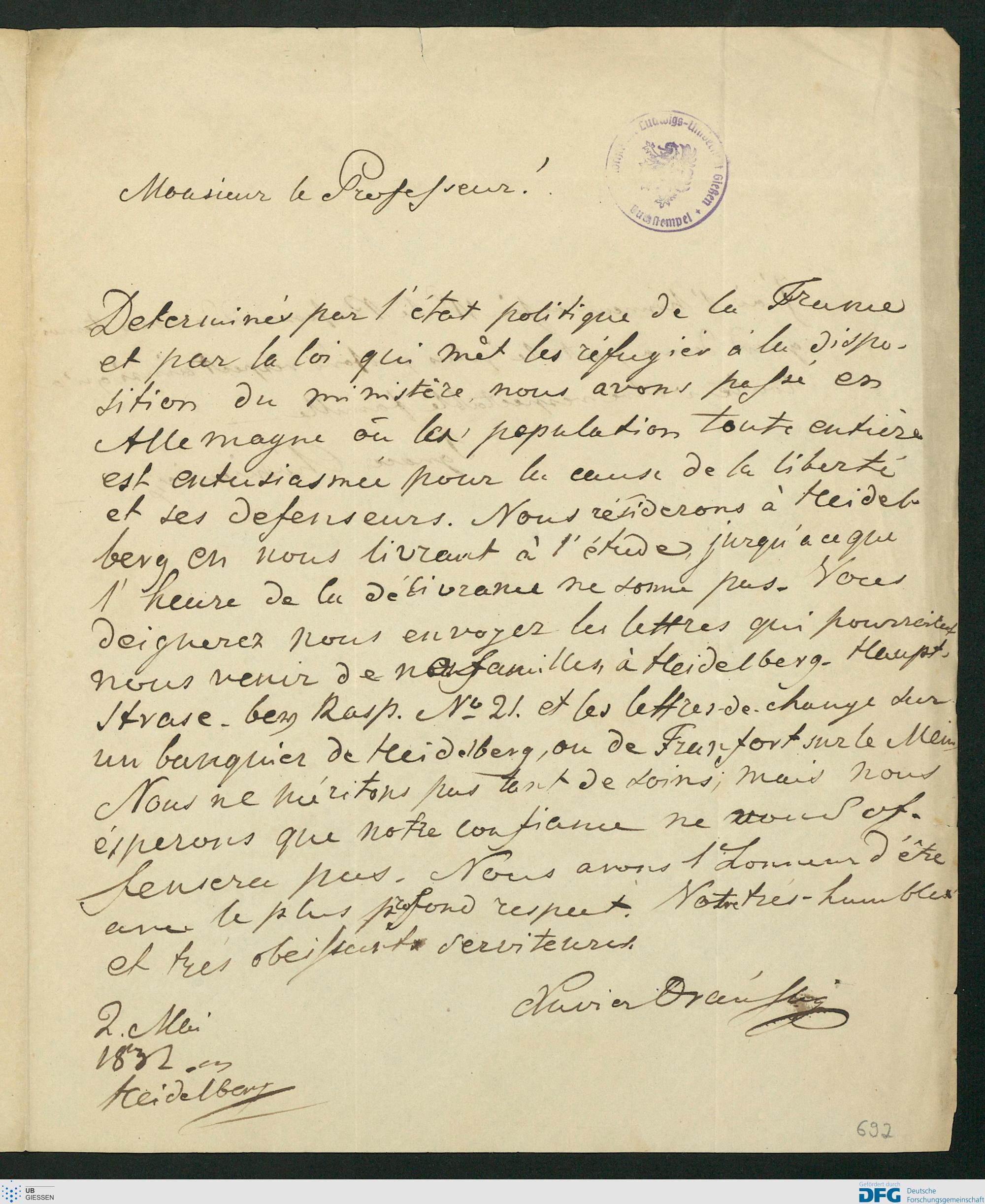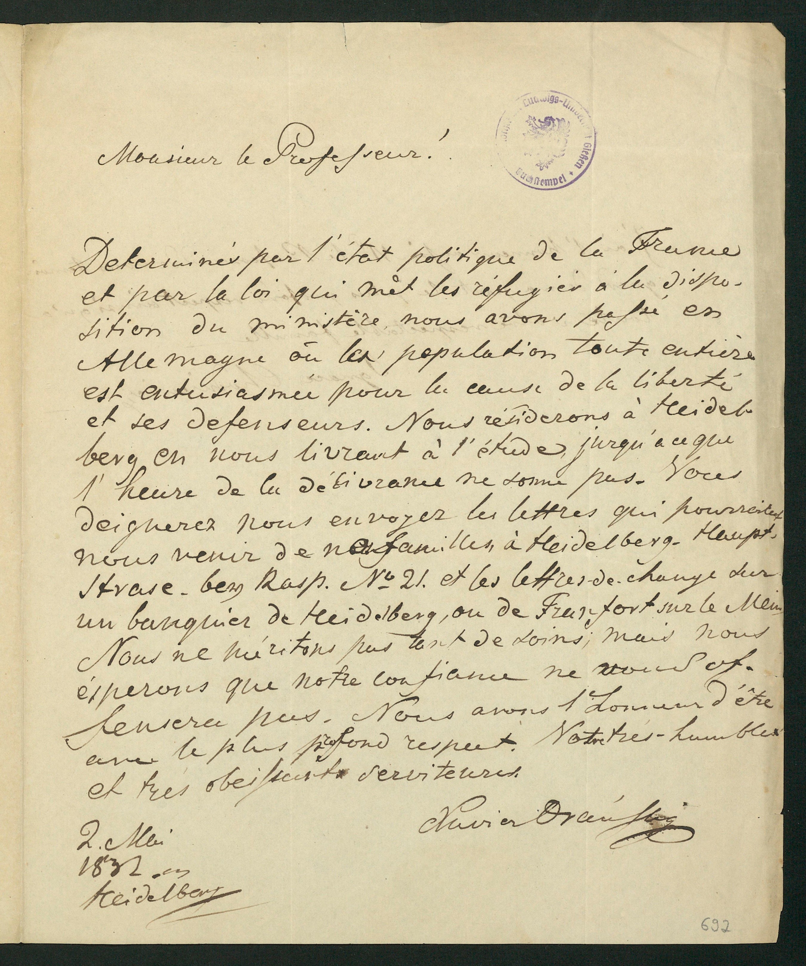 Brief von Xavier Oranski und Ignacy Chodkiewicz an Karl Ernst von Baer, 02.05.1832 [2 Mai 1832 an]