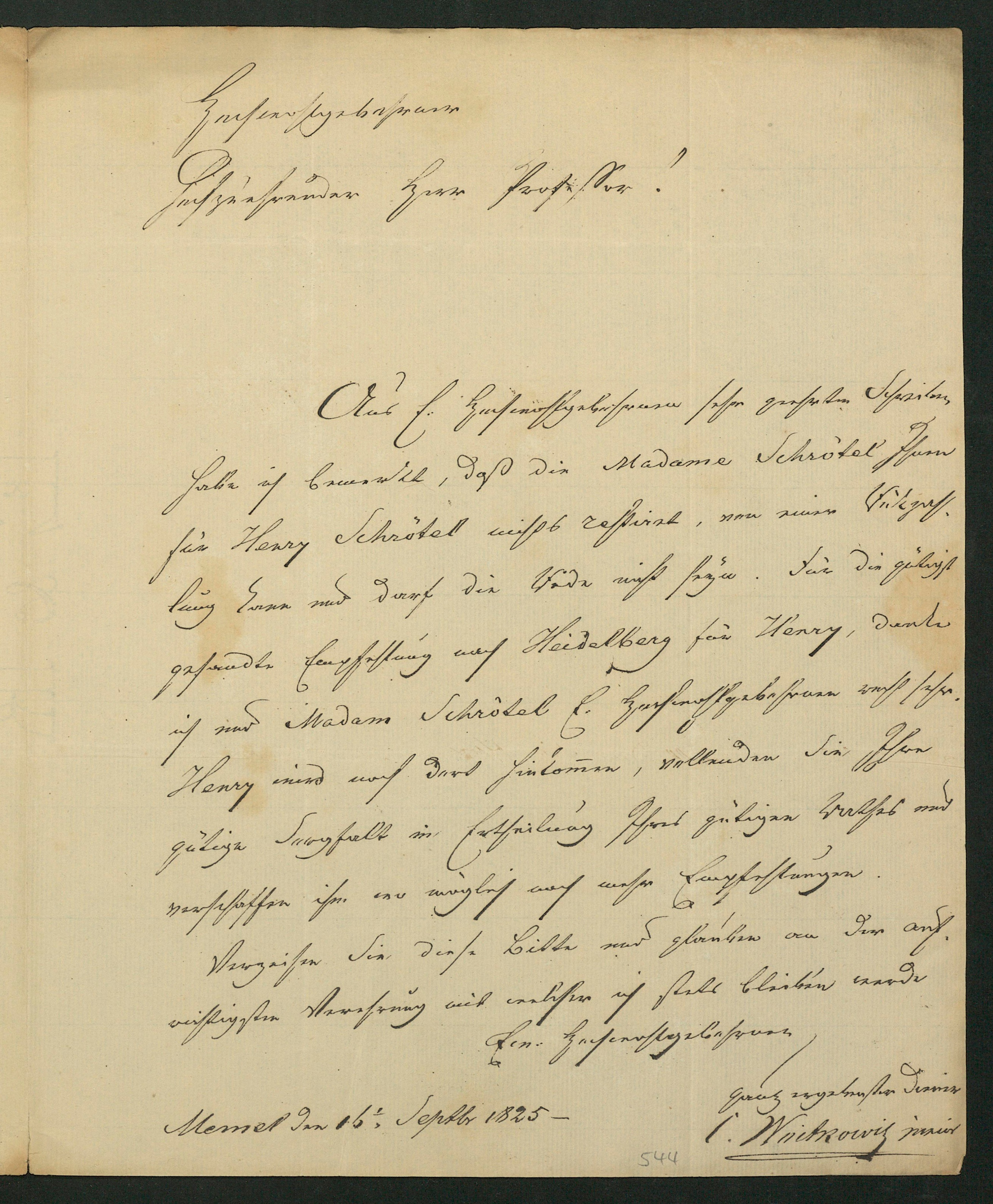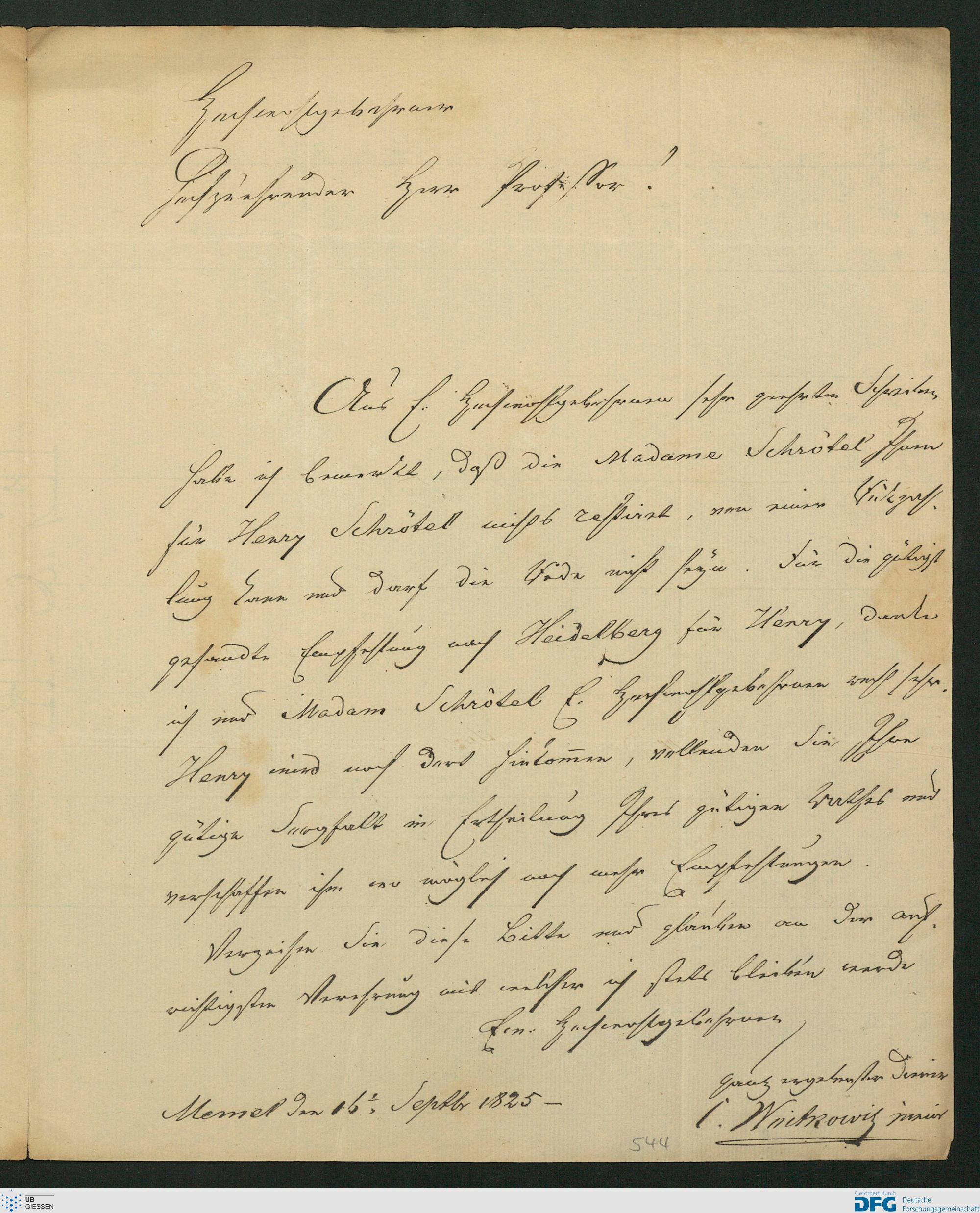 Brief von Karl Woitkowitz an Karl Ernst von Baer, 16.09.1825 [16n Septbr 1825]