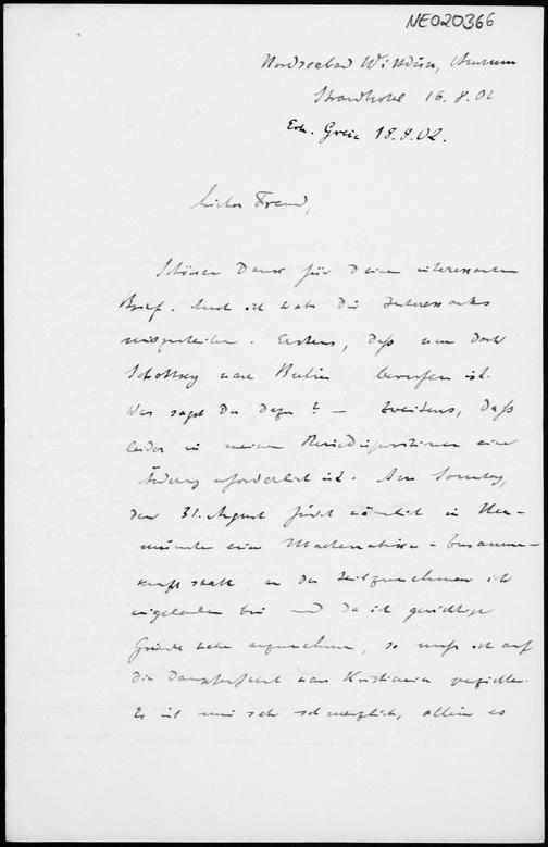 Brief von Paul Stäckel an Friedrich Engel vom 16.8.1902