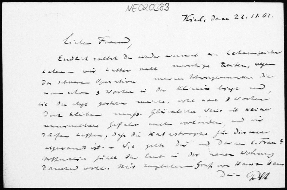 Postkarte von Paul Stäckel an Friedrich Engel vom 22.11.1902