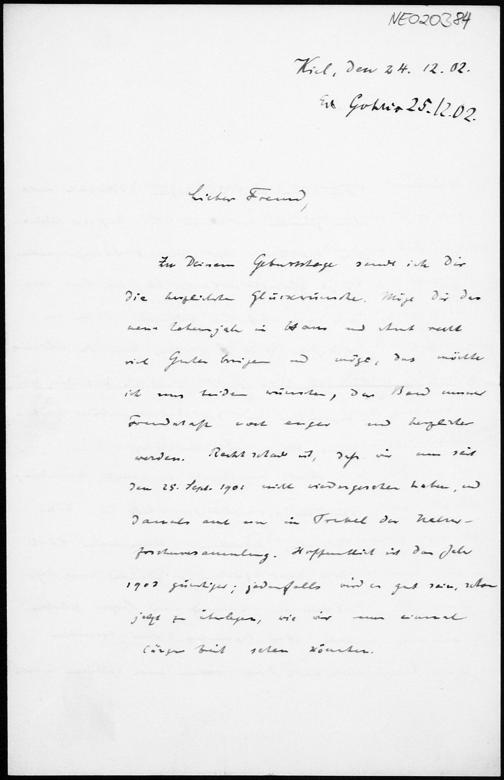 Brief von Paul Stäckel an Friedrich Engel vom 24.12.1902
