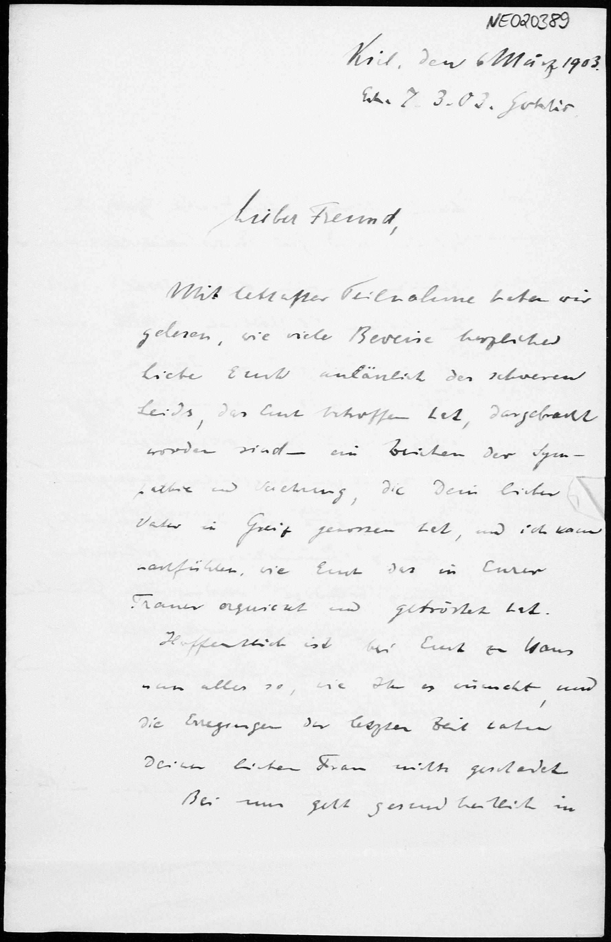 Brief von Paul Stäckel an Friedrich Engel vom 6.3.1903
