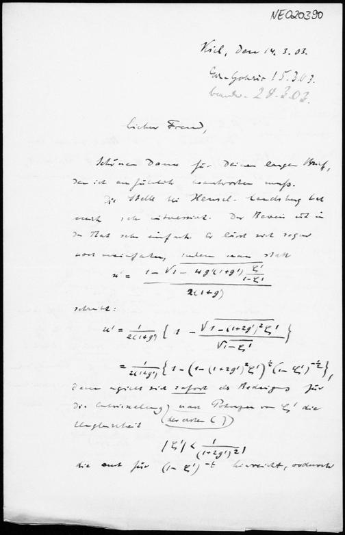 Brief von Paul Stäckel an Friedrich Engel vom 14.3.1903