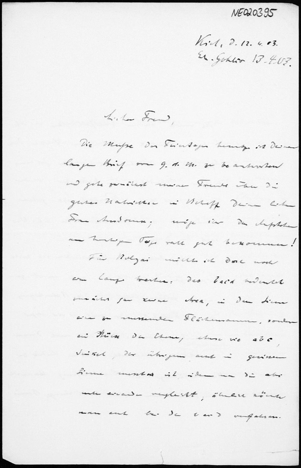 Brief von Paul Stäckel an Friedrich Engel vom 12.4.1903