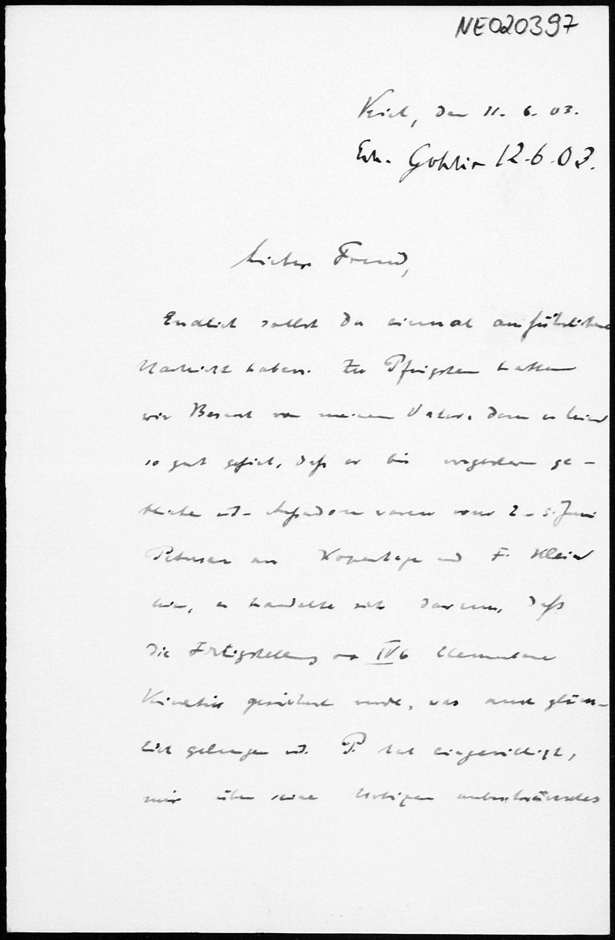 Brief von Paul Stäckel an Friedrich Engel vom 11.6.1903