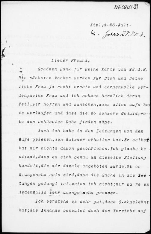 Brief von Paul Stäckel an Friedrich Engel vom 25.7.1903