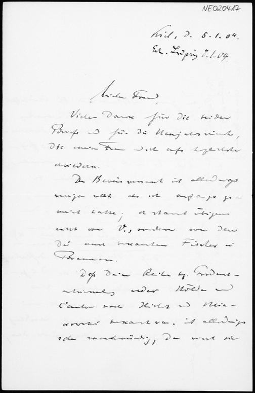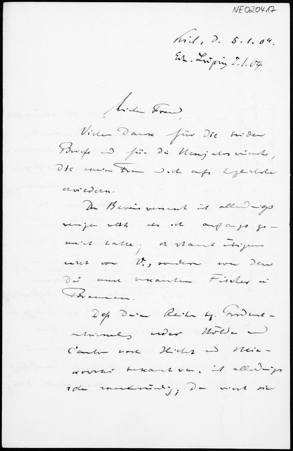 Brief von Paul Stäckel an Friedrich Engel vom 5.1.1904