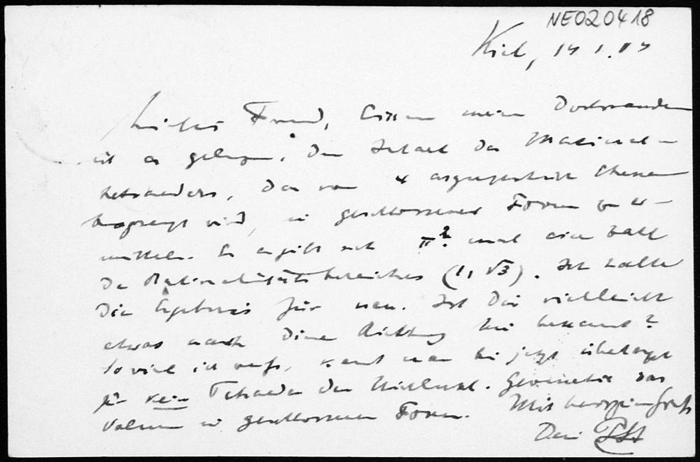 Postkarte von Paul Stäckel an Friedrich Engel vom 14.1.1904