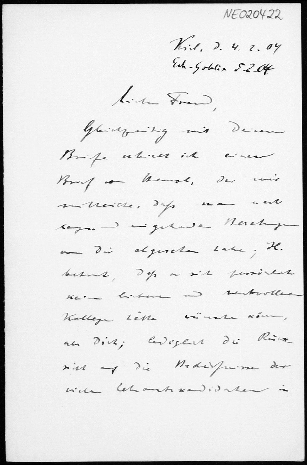 Brief von Paul Stäckel an Friedrich Engel vom 4.2.1904