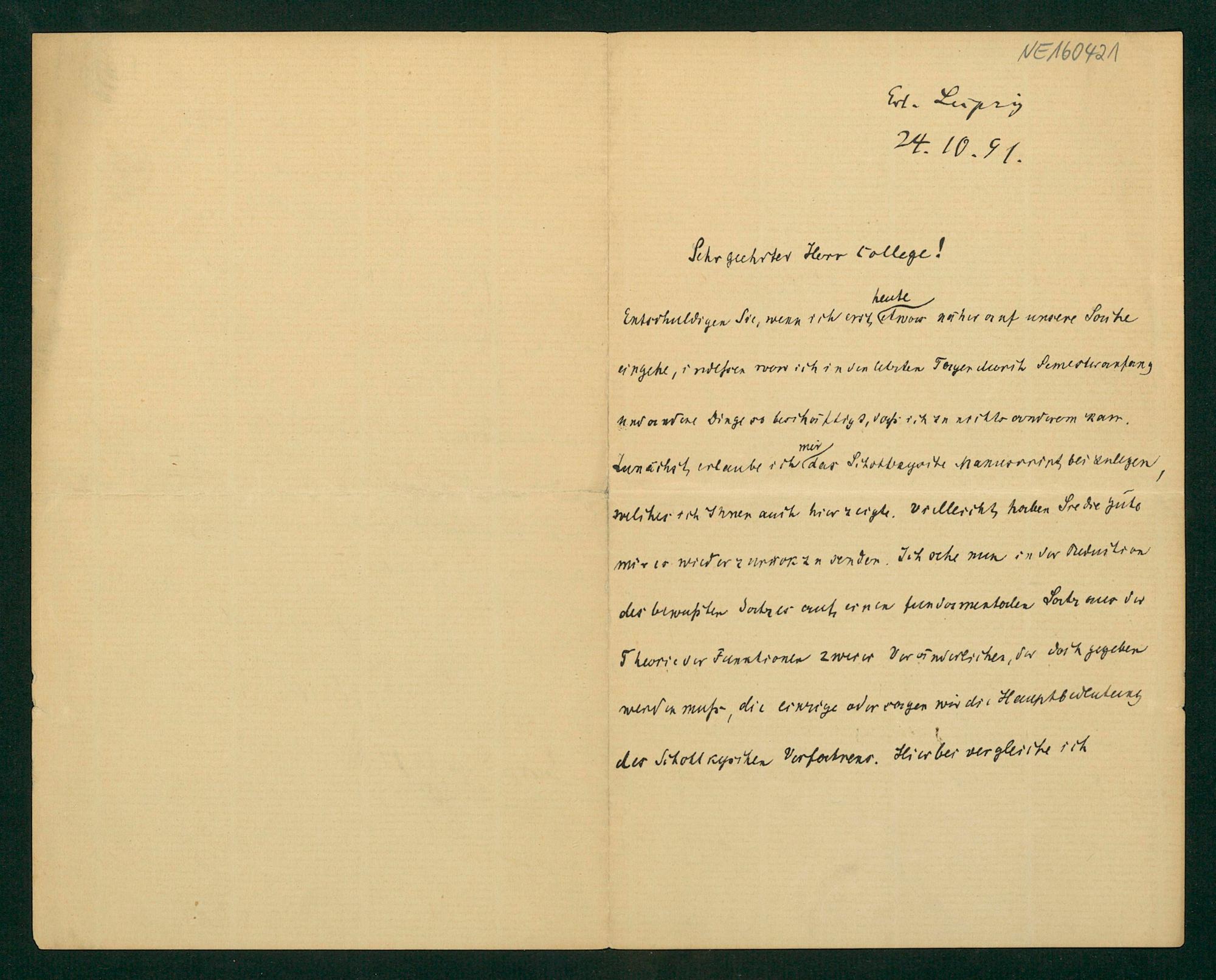 Brief von Martin Krause an Friedrich Engel vom 23.10.1891