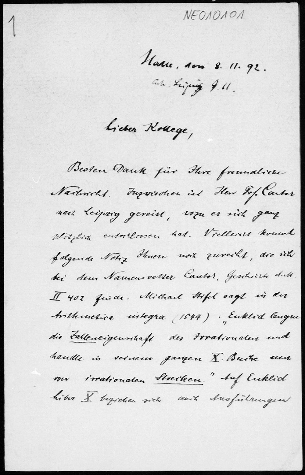 Brief von Paul Stäckel an Friedrich Engel vom 8.11.1892