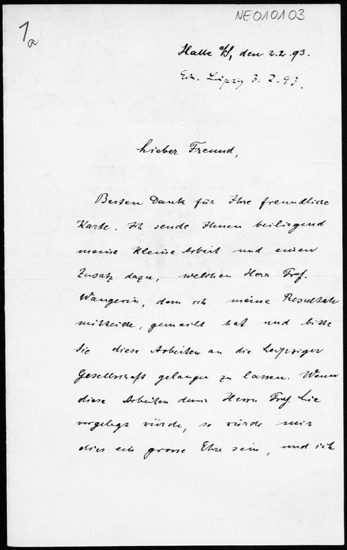 Brief von Paul Stäckel an Friedrich Engel vom 2.2.1893