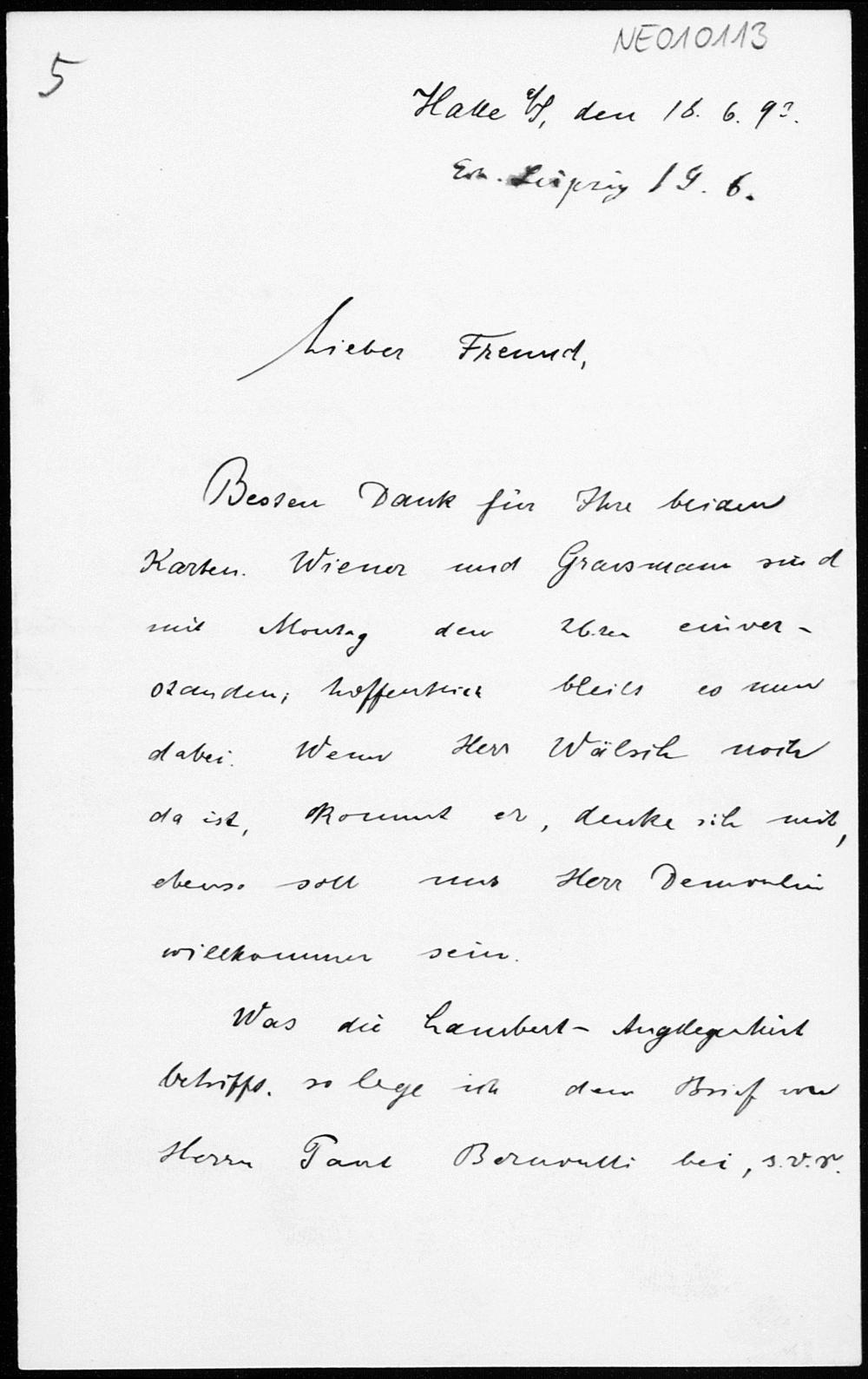 Brief von Paul Stäckel an Friedrich Engel vom 18.6.1893