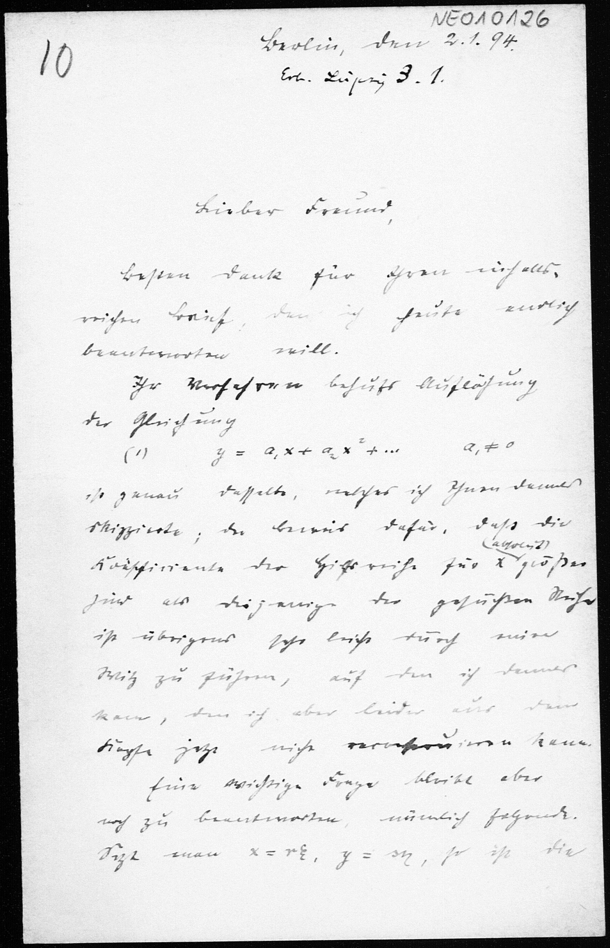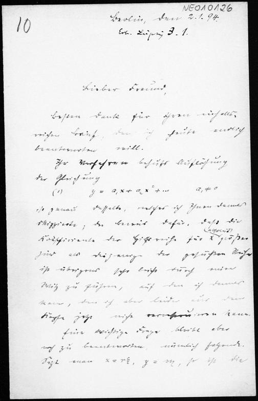 Brief von Paul Stäckel an Friedrich Engel vom 2.1.1894