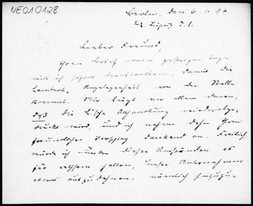 Briefkarte von Paul Stäckel an Friedrich Engel vom 6.1.1894