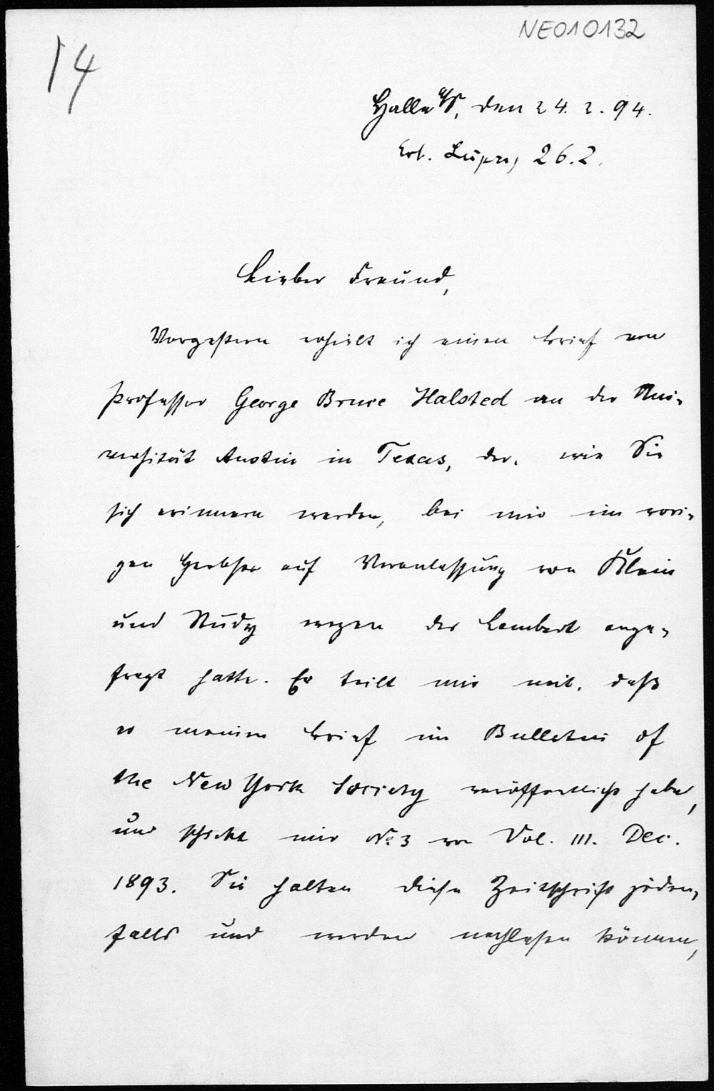 Brief von Paul Stäckel an Friedrich Engel vom 24.2.1894