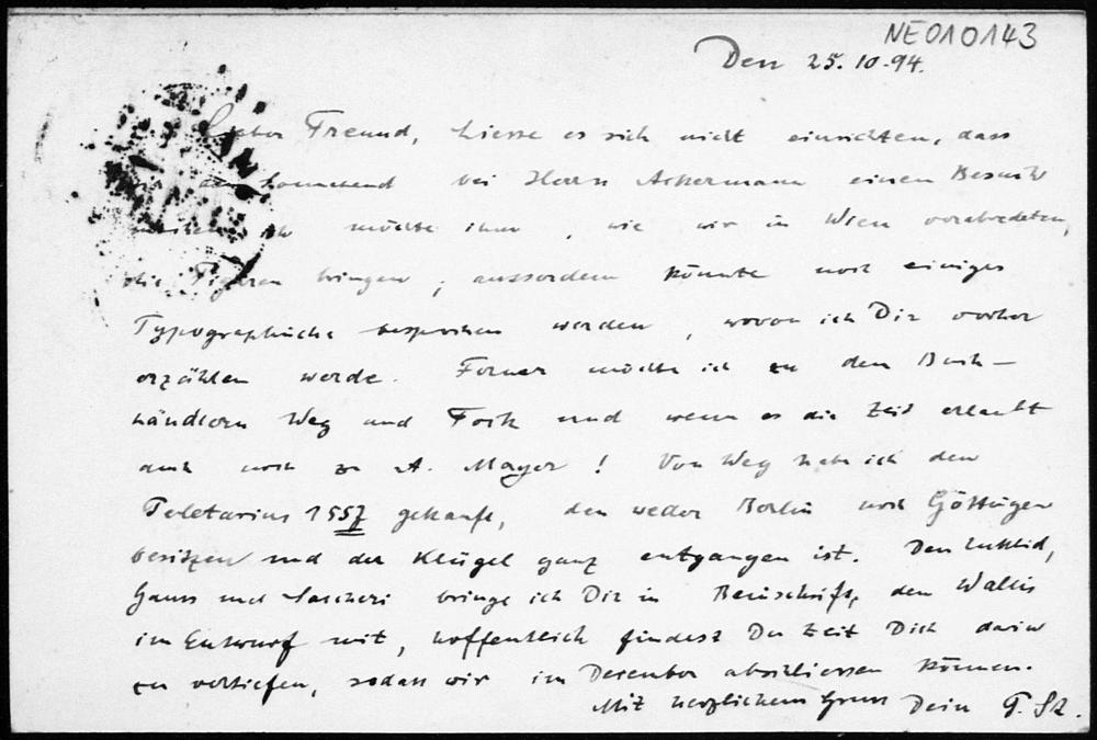 Postkarte von Paul Stäckel an Friedrich Engel vom 25.10.1894