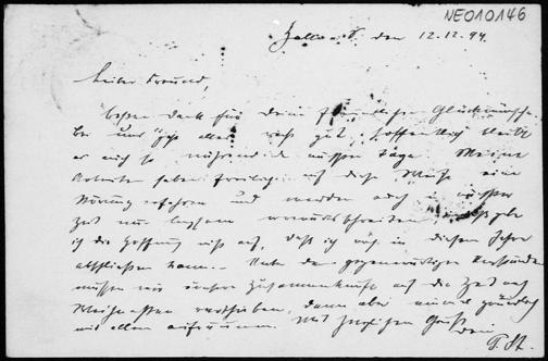 Postkarte von Paul Stäckel an Friedrich Engel vom 12.12.1894