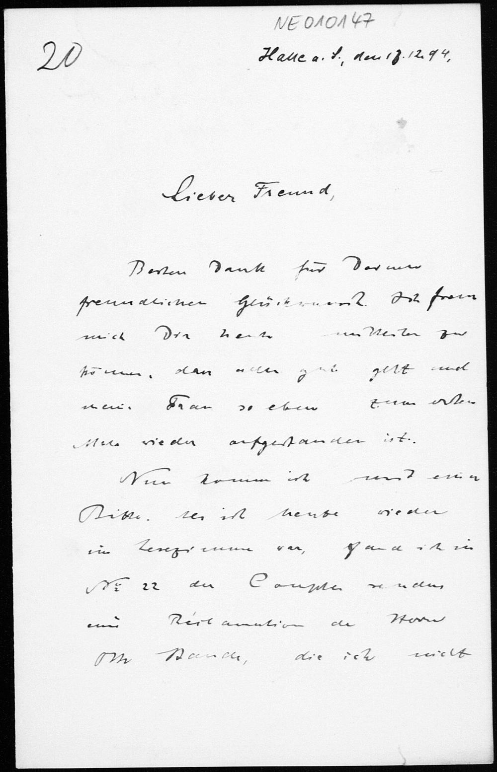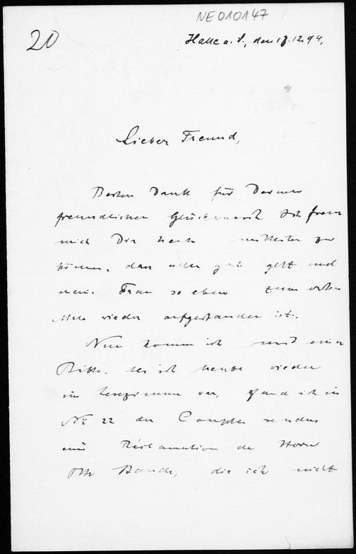 Brief von Paul Stäckel an Friedrich Engel vom 16.12.1894