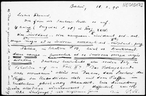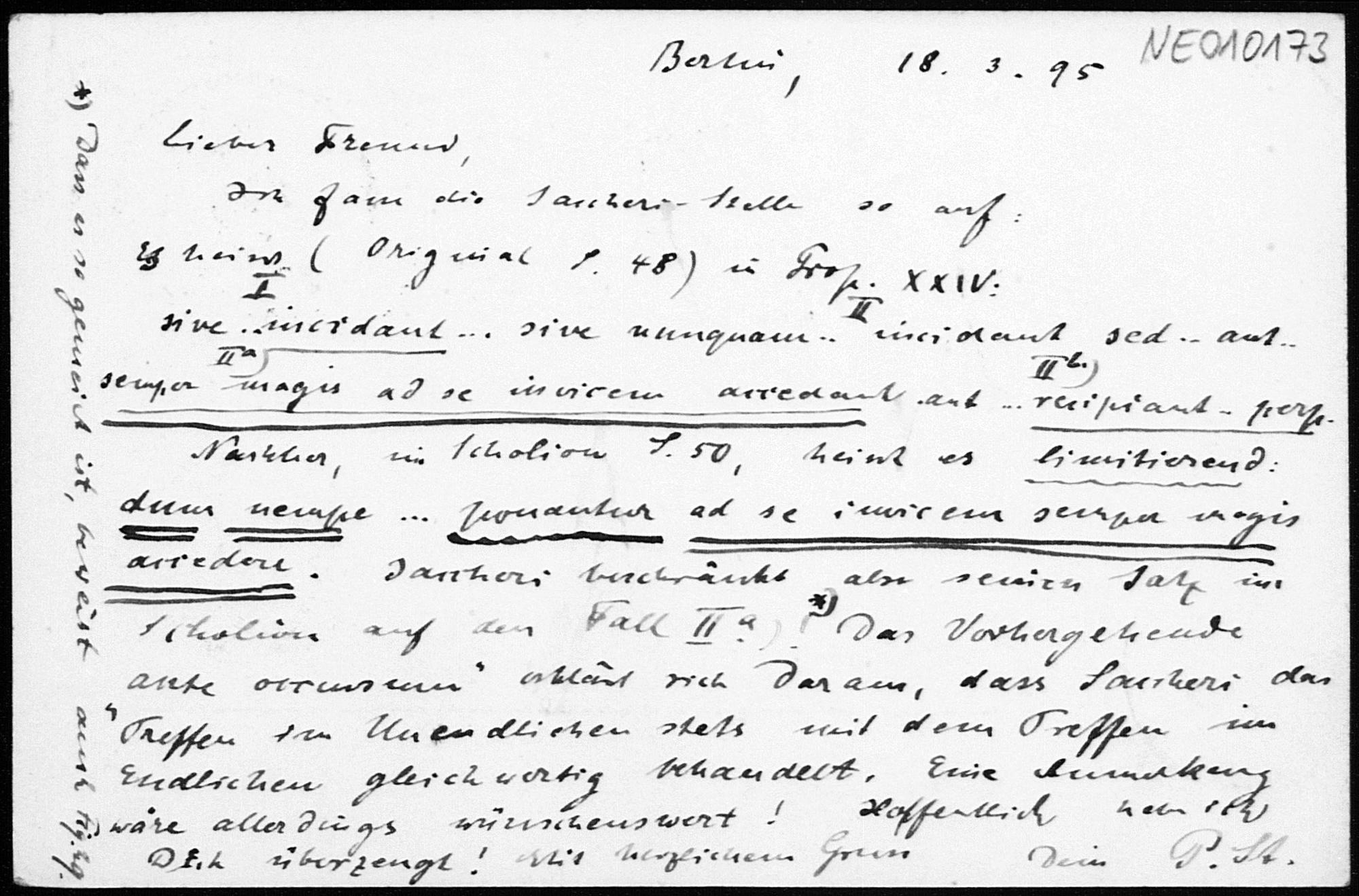 Postkarte von Paul Stäckel an Friedrich Engel vom 18.3.1895