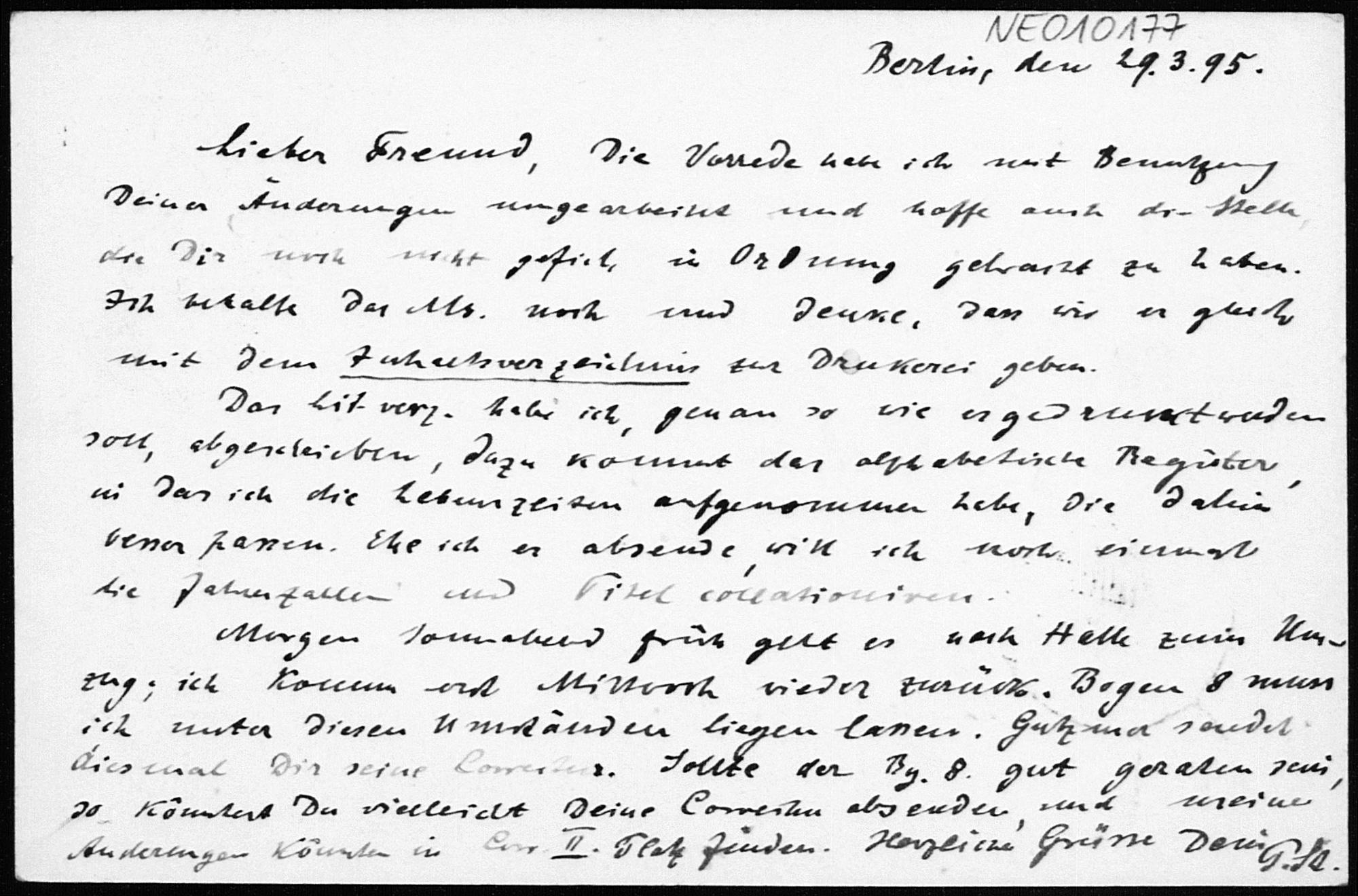 Postkarte von Paul Stäckel an Friedrich Engel vom 29.3.1895