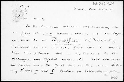 Postkarte von Paul Stäckel an Friedrich Engel vom 24.4.1895