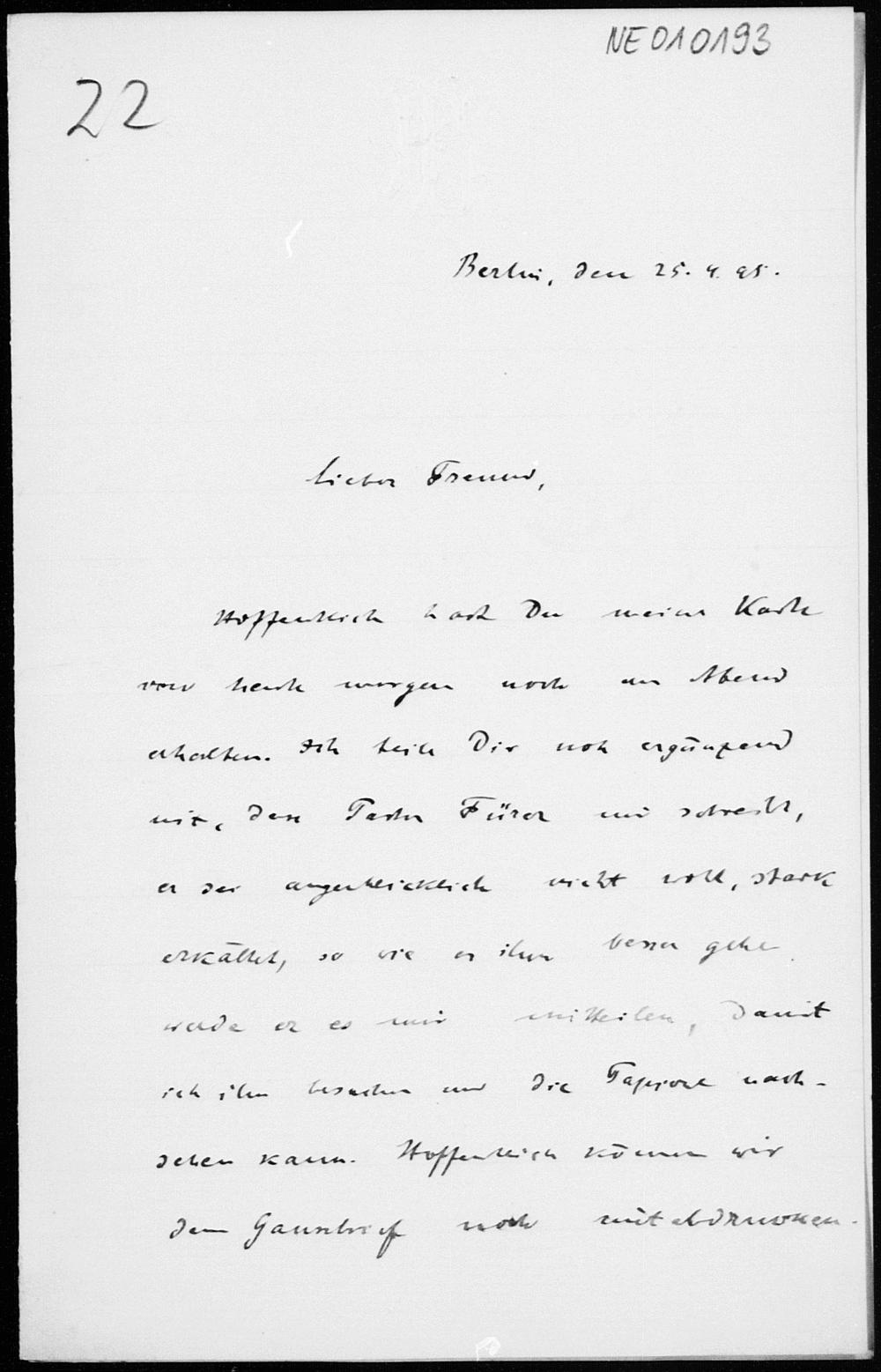 Brief von Paul Stäckel an Friedrich Engel vom 25.4.1895