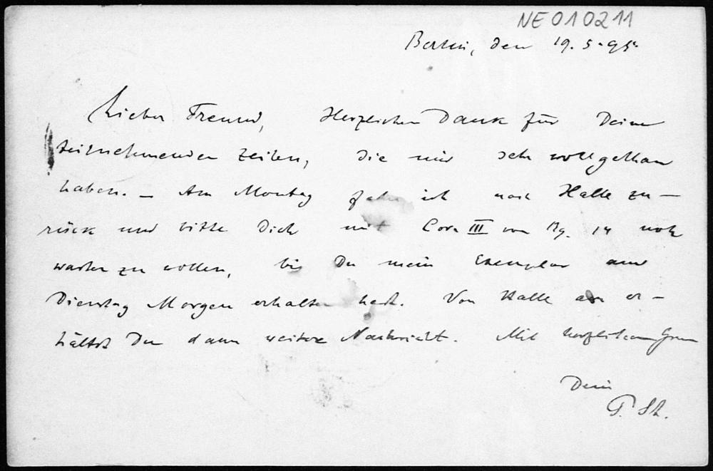 Postkarte von Paul Stäckel an Friedrich Engel vom 19.5.1895
