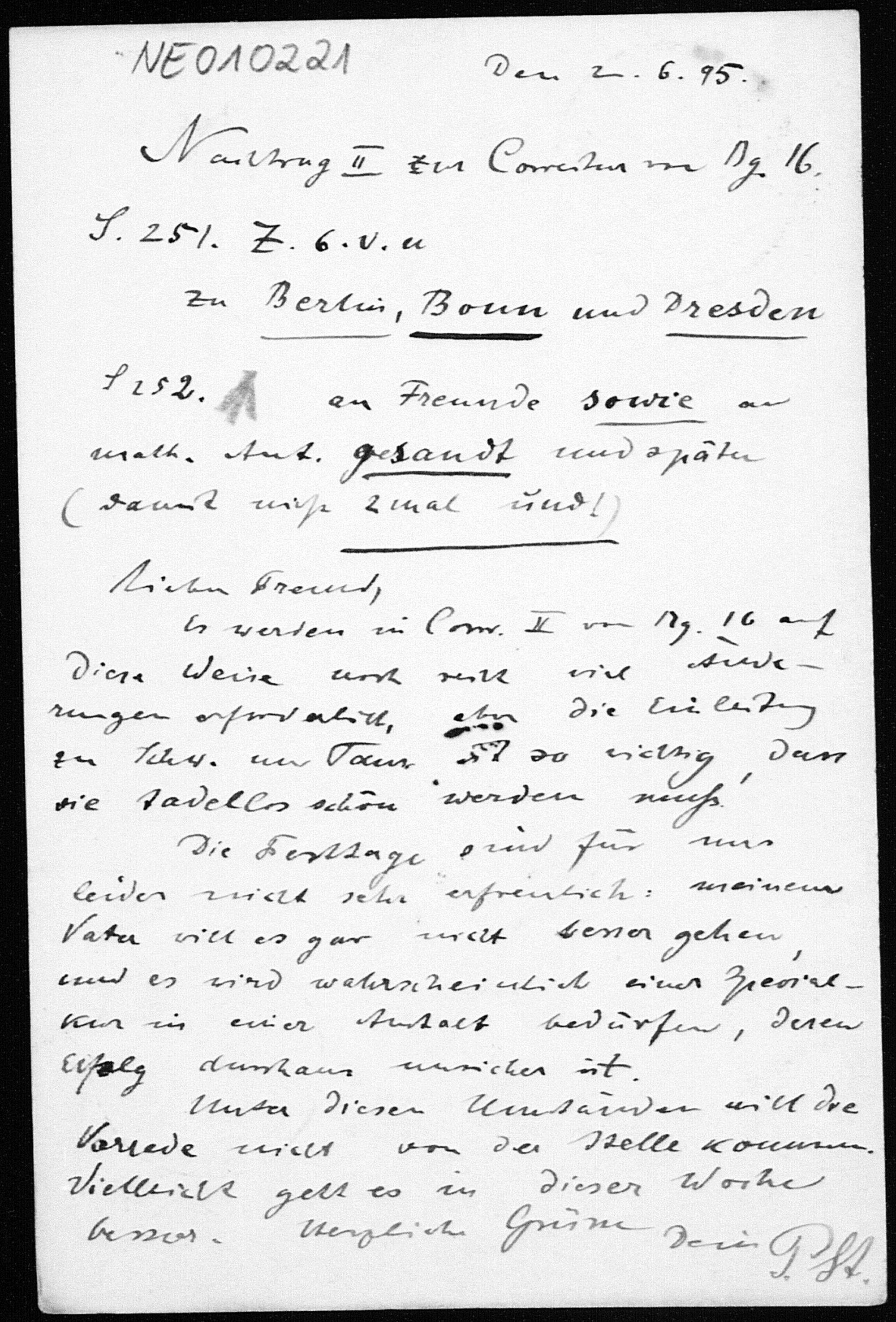 Postkarte von Paul Stäckel an Friedrich Engel vom 2.6.1895