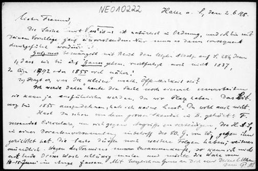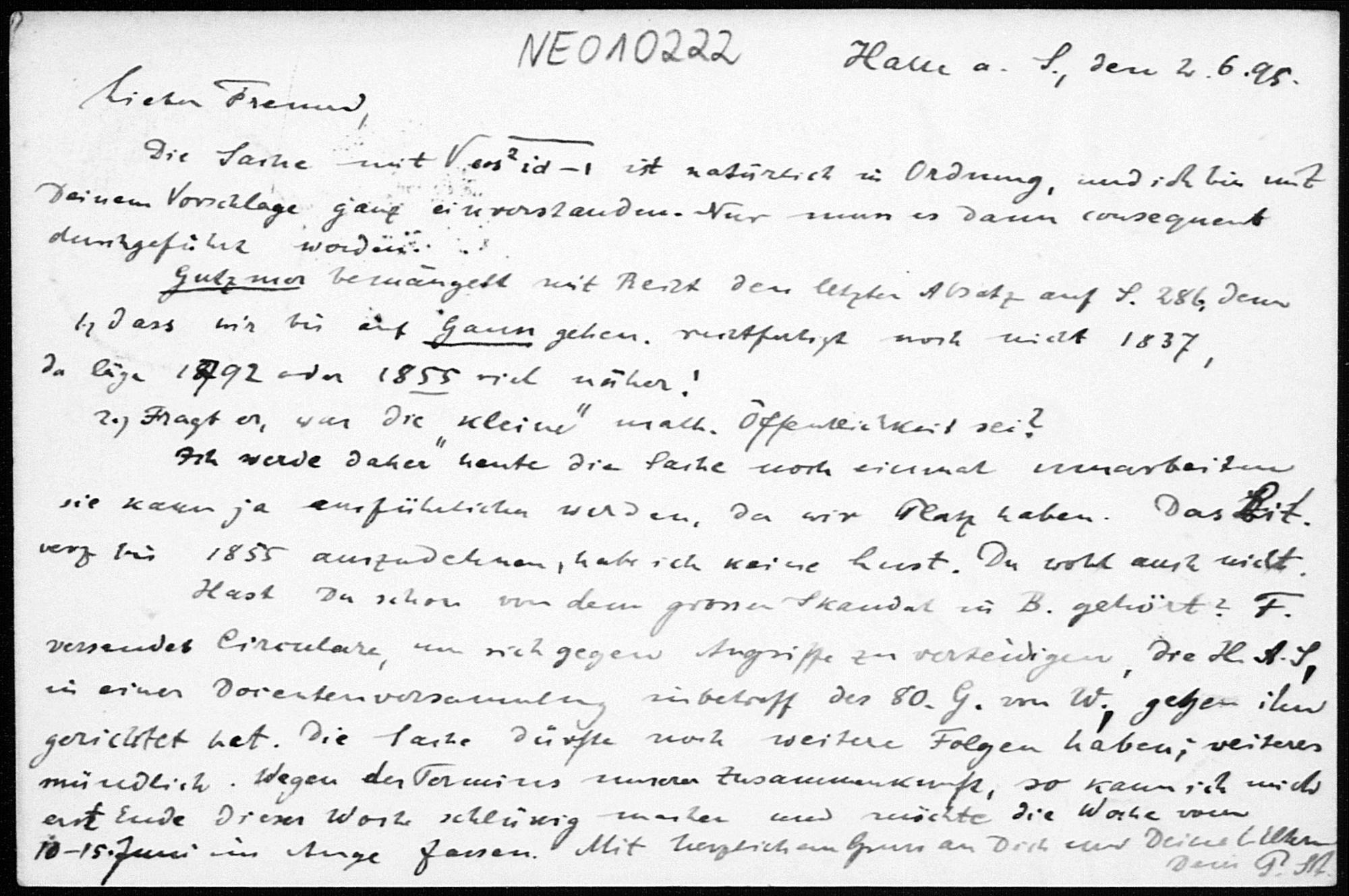 Postkarte von Paul Stäckel an Friedrich Engel vom 2.6.1895
