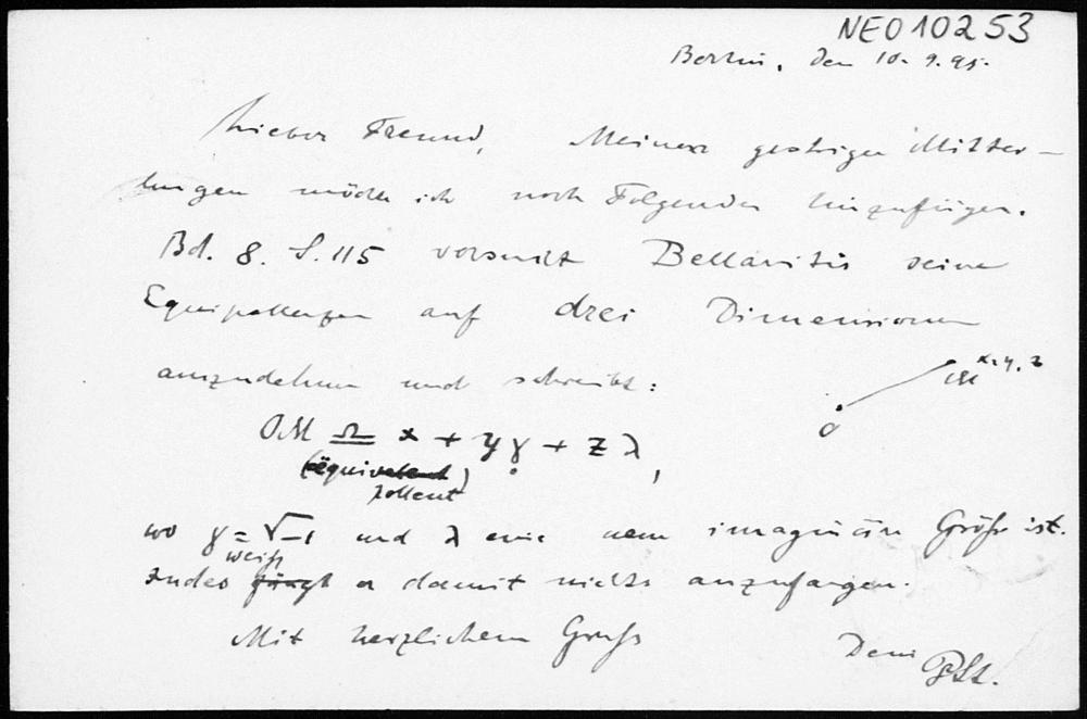 Postkarte von Paul Stäckel an Friedrich Engel vom 10.9.1895