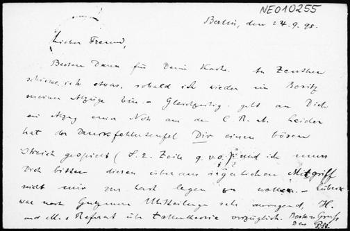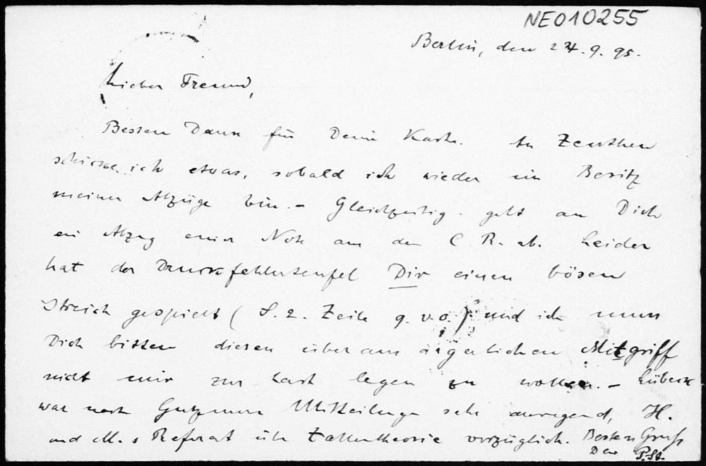 Postkarte von Paul Stäckel an Friedrich Engel vom 24.9.1895