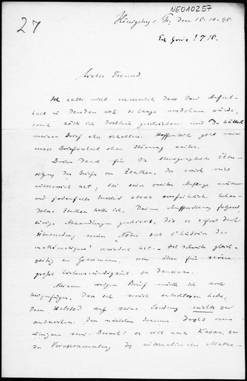 Brief von Paul Stäckel an Friedrich Engel vom 15.10.1895