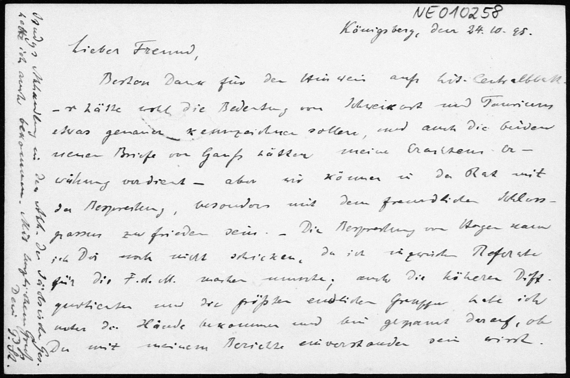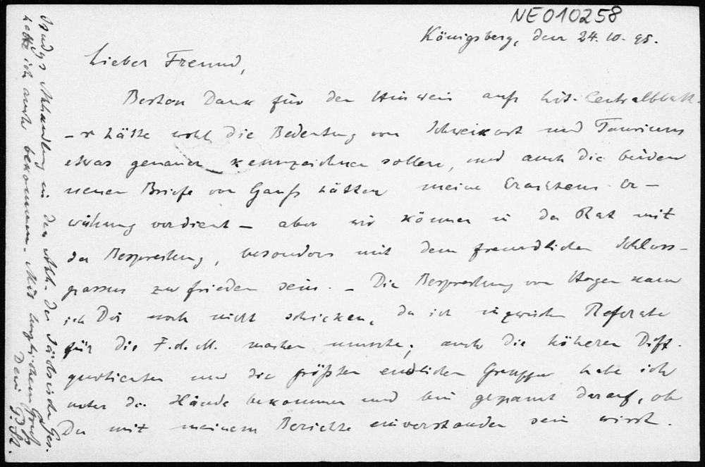 Postkarte von Paul Stäckel an Friedrich Engel vom 23.10.1895