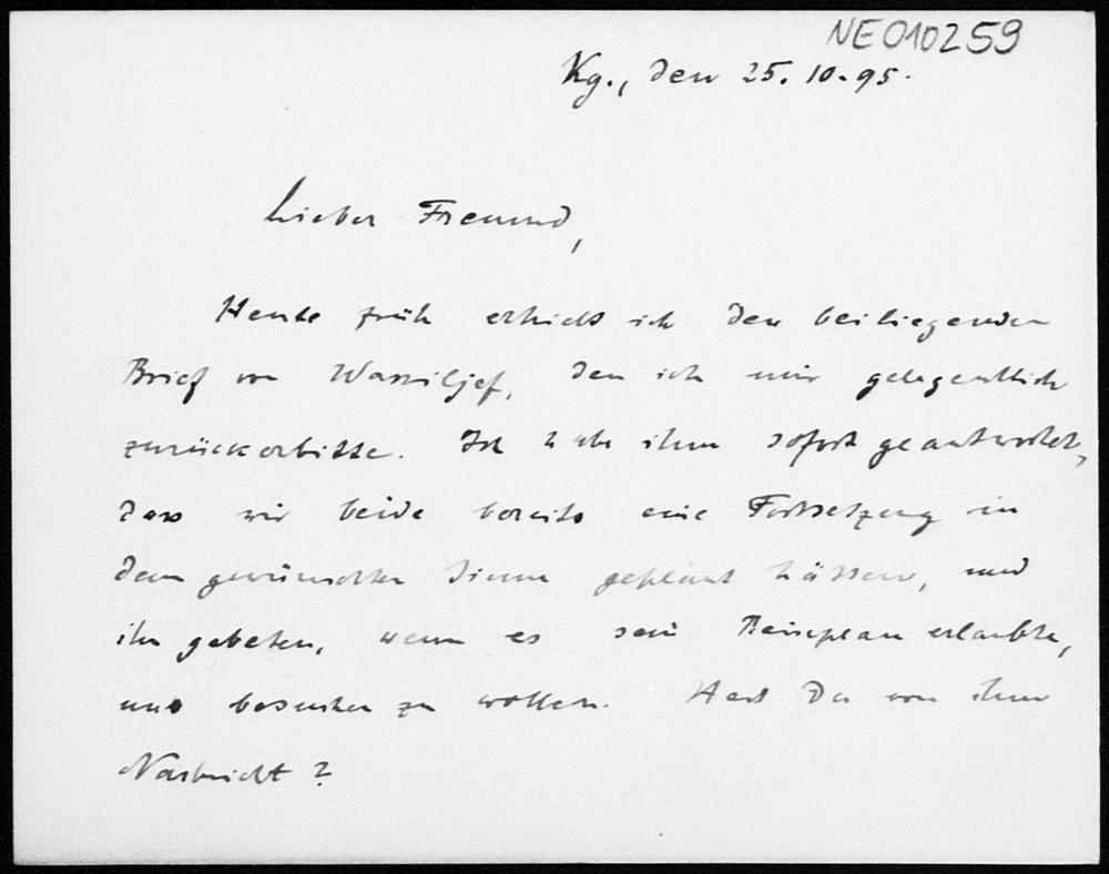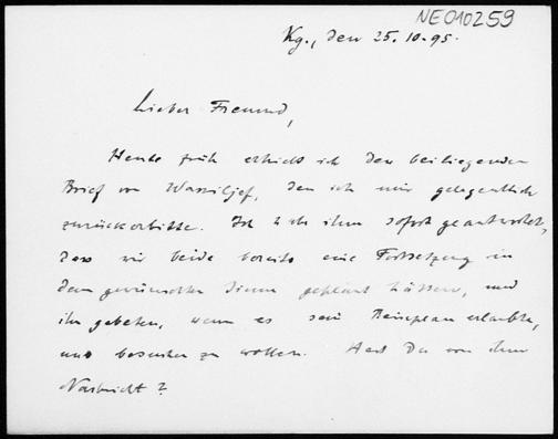 Briefkarte von Paul Stäckel an Friedrich Engel vom 25.10.1895
