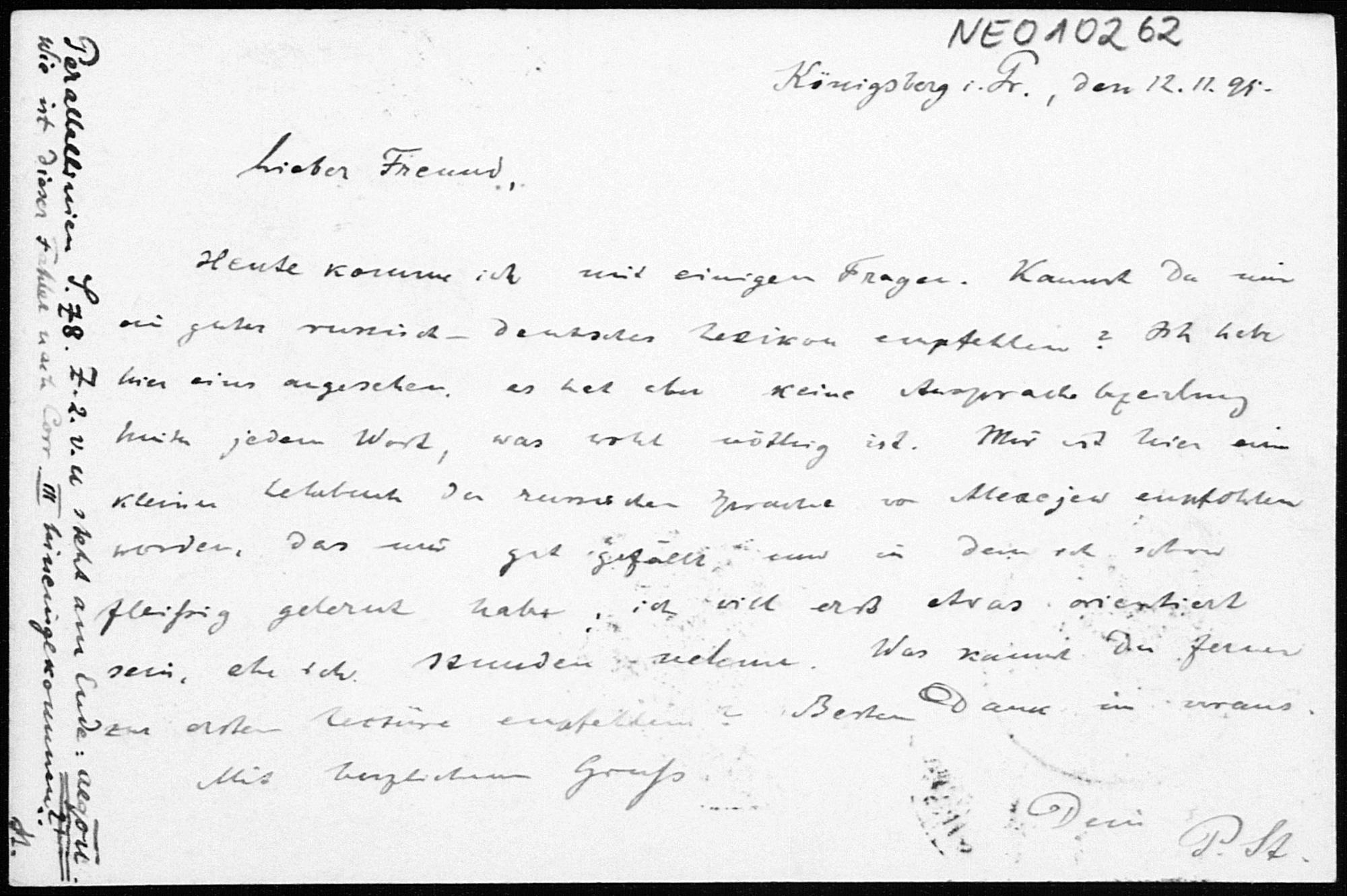 Postkarte von Paul Stäckel an Friedrich Engel vom 12.11.1895