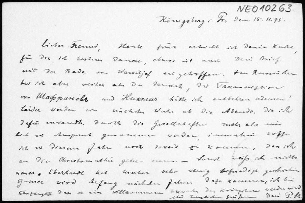 Postkarte von Paul Stäckel an Friedrich Engel vom 15.11.1895