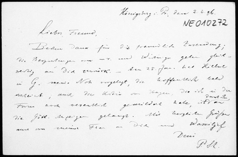 Postkarte von Paul Stäckel an Friedrich Engel vom 2.2.1896