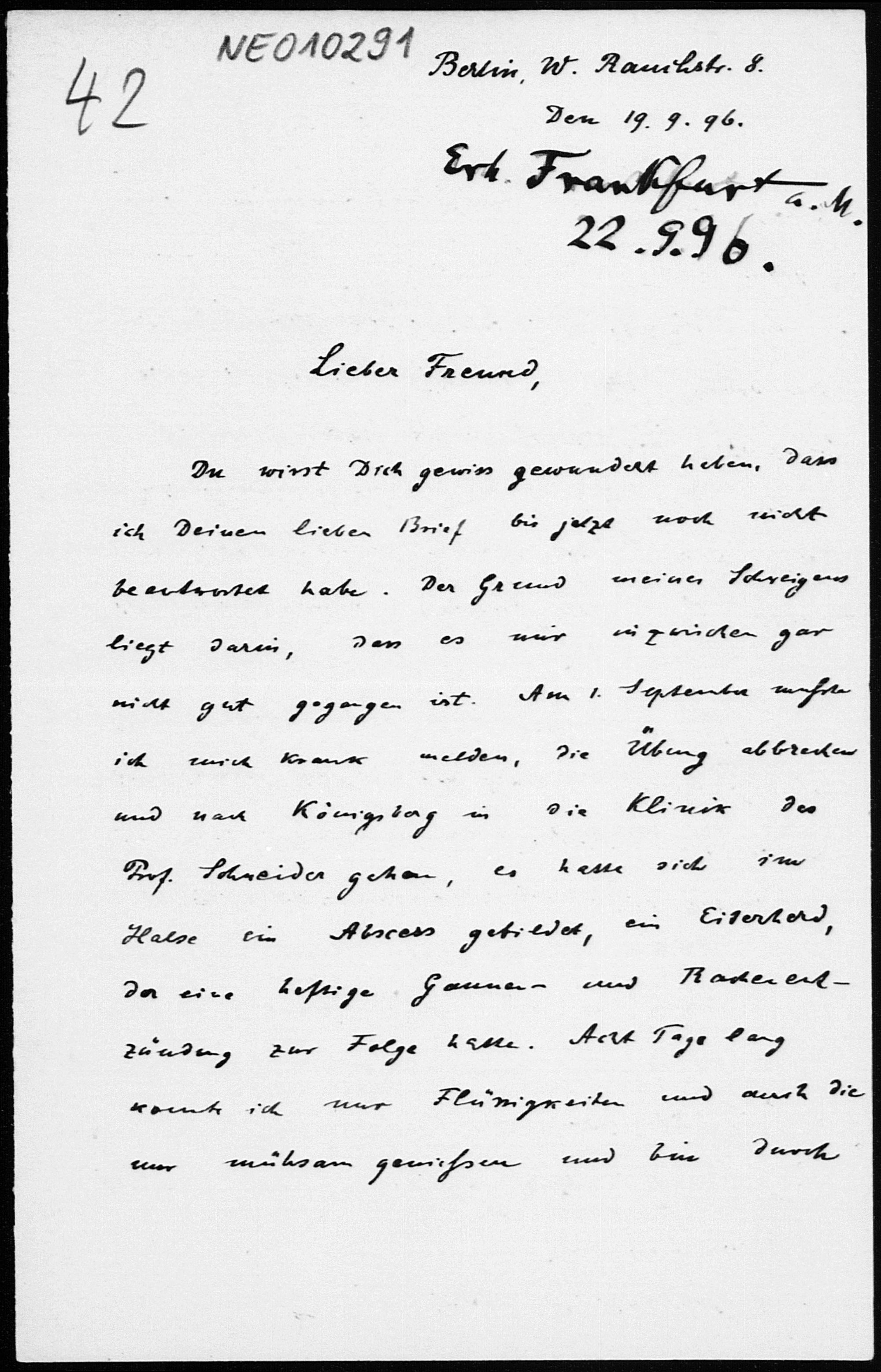 Brief von Paul Stäckel an Friedrich Engel vom 19.9.1896