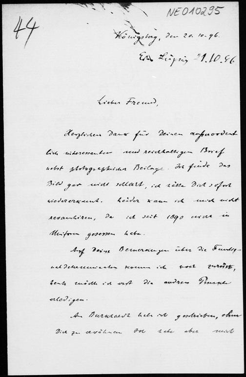 Brief von Paul Stäckel an Friedrich Engel vom 20.10.1896