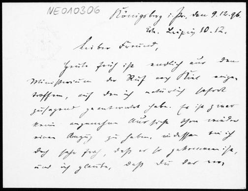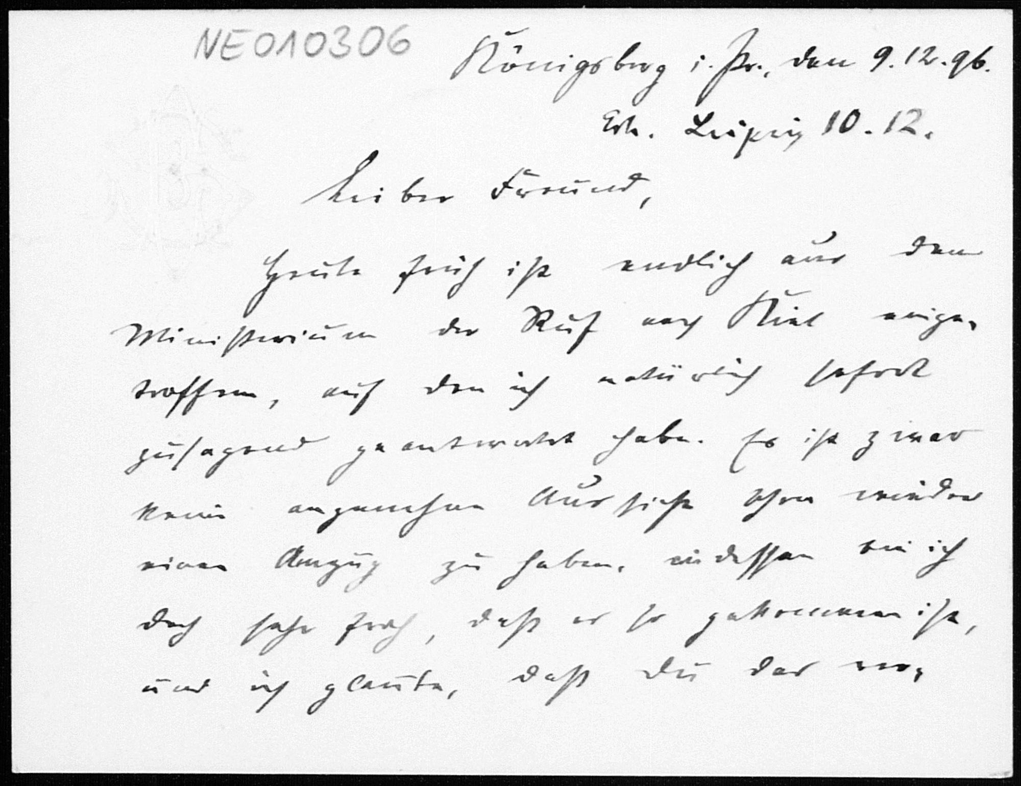 Briefkarte von Paul Stäckel an Friedrich Engel vom 9.12.1896