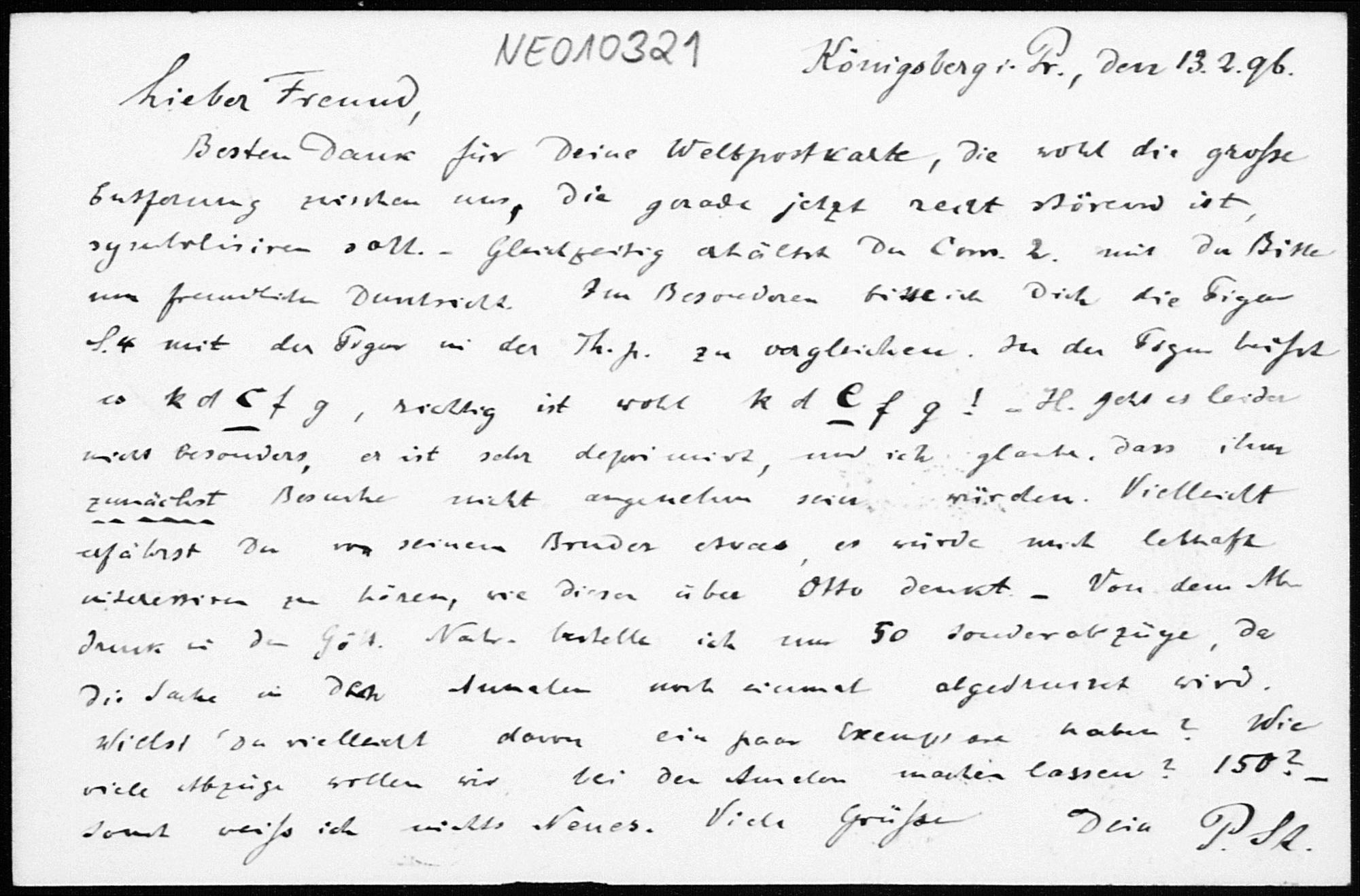 Postkarte von Paul Stäckel an Friedrich Engel vom 13.2.1897