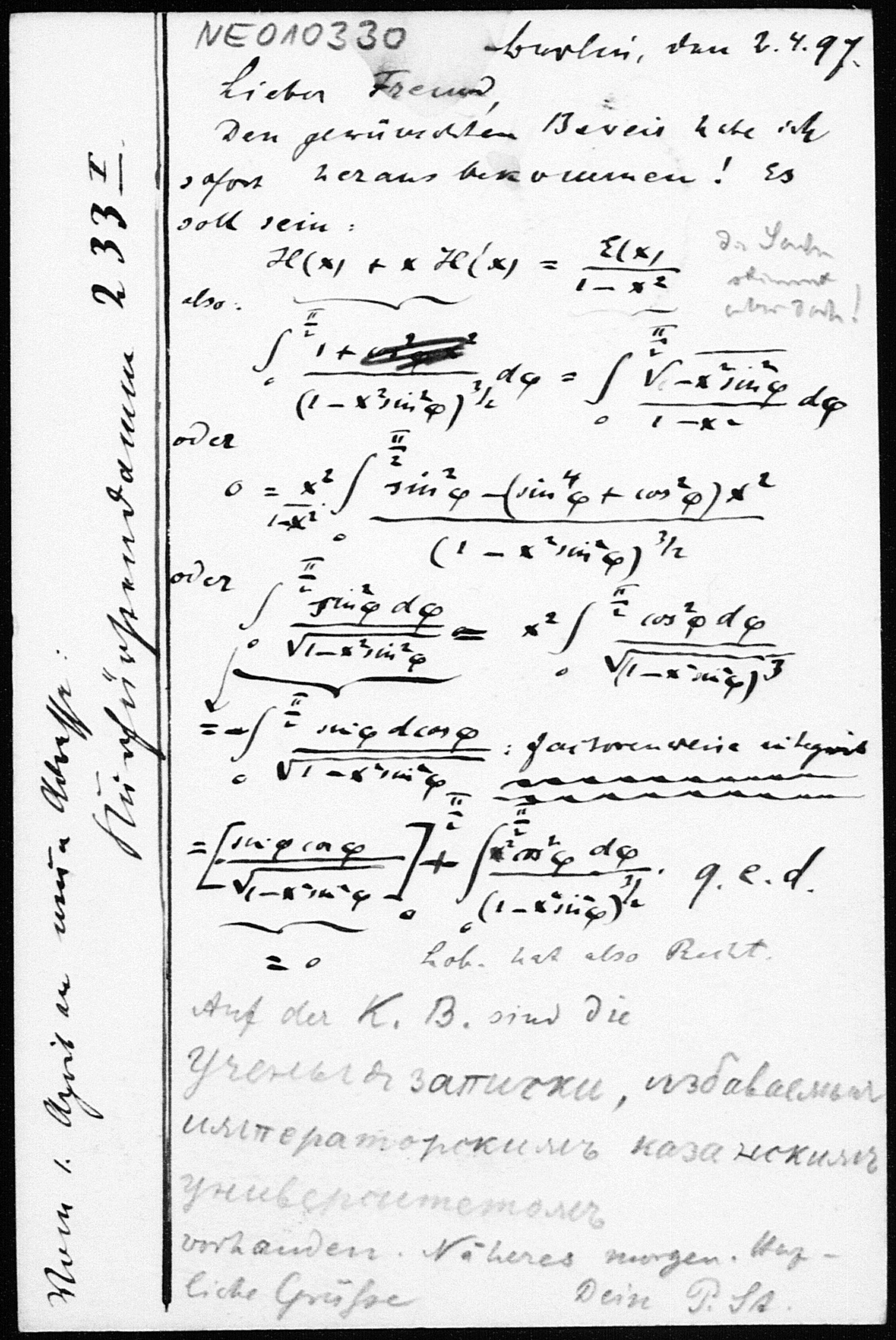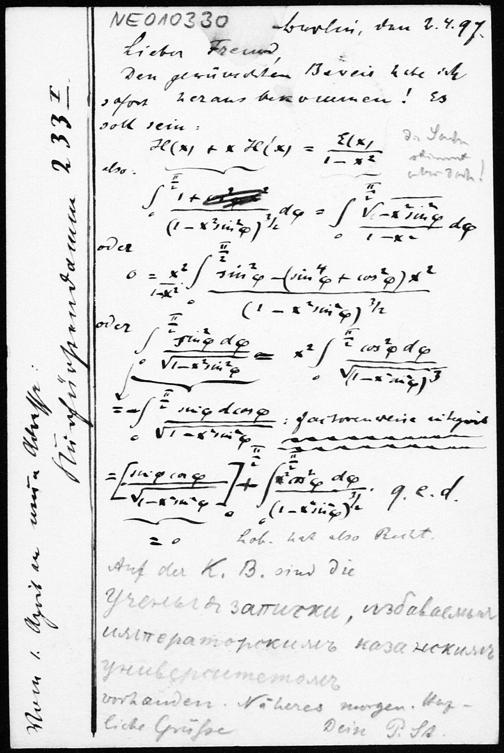 Postkarte von Paul Stäckel an Friedrich Engel vom 2.4.1897