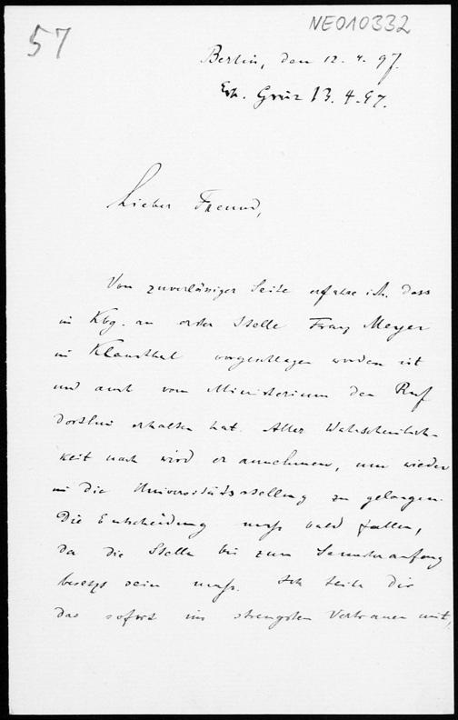 Brief von Paul Stäckel an Friedrich Engel vom 12.4.1897