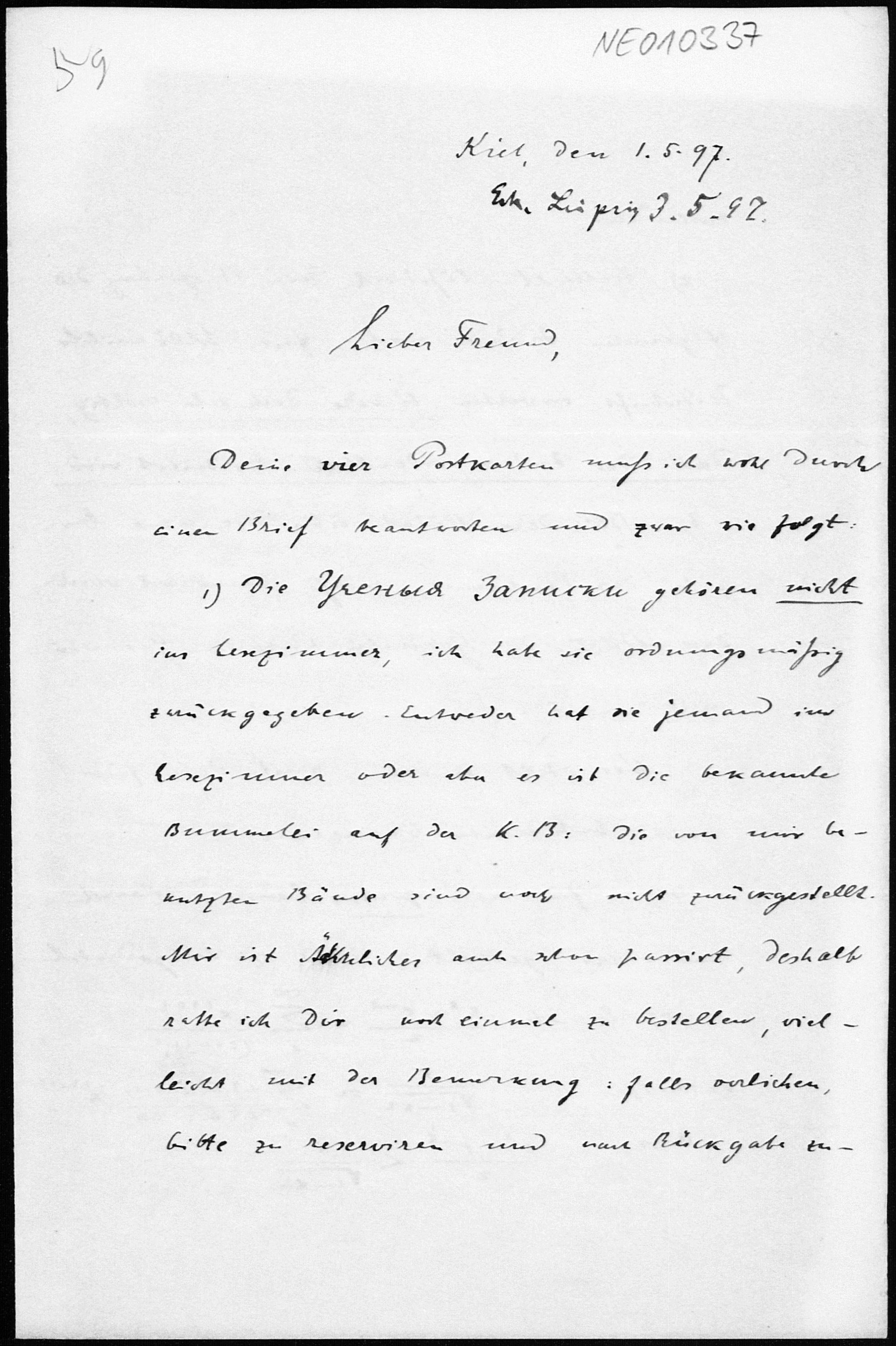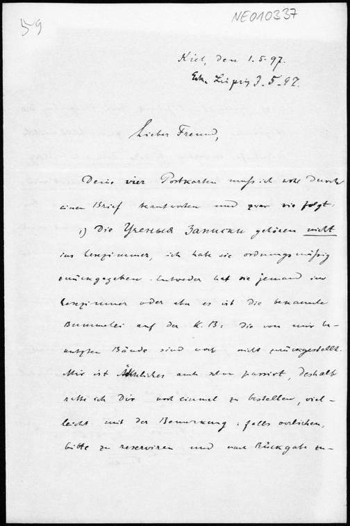 Brief von Paul Stäckel an Friedrich Engel vom 1.5.1897