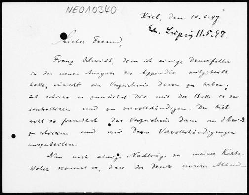 Briefkarte von Paul Stäckel an Friedrich Engel vom 10.5.1897