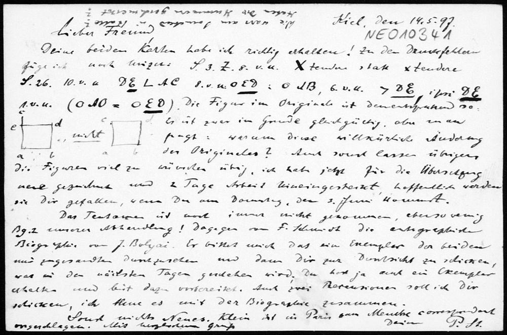 Postkarte von Paul Stäckel an Friedrich Engel vom 14.5.1897