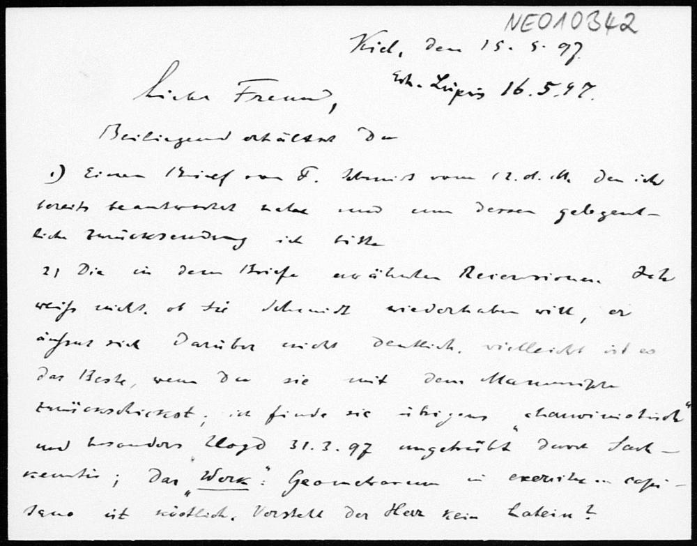 Briefkarte von Paul Stäckel an Friedrich Engel vom 15.5.1897